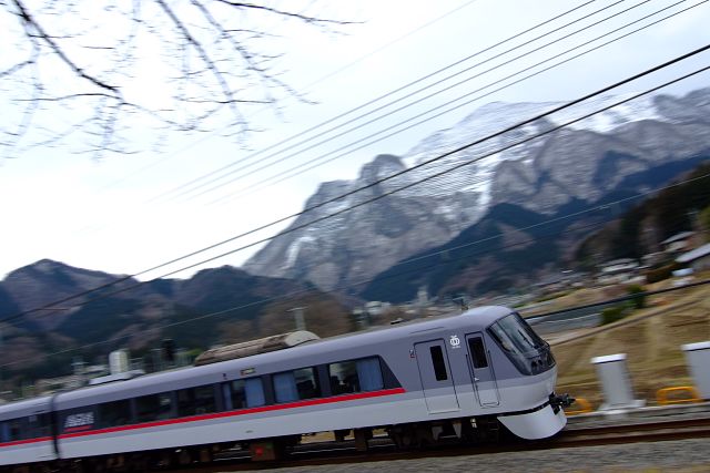 西武のレッドアローを武甲山をバックに流し撮り。